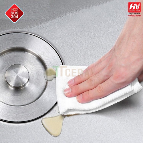 - Bồn rửa chén inox 304 2 hố làm bằng inox 304, màu sắc sáng mờ (màu của inox 304).